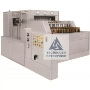 We are manufacturer, exporter and supplier of compact & Highly Efficient Semi Automatic Rotary bottle washing machine for washing of glass & plastic bottles. This machine is best suitable for lower production output. The machine is Rotary intermittent motion with Geneva mechanism and operator requires manual loading and unloading of bottles in pocket while executing washing. This Machine washes internal & external surface of bottles through water and Air cycles.